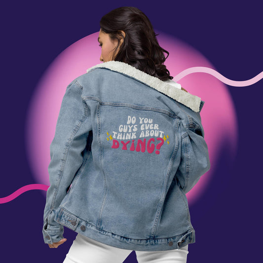 Do you ever think of dying Unisex denim sherpa jacket (Barbie Movie)